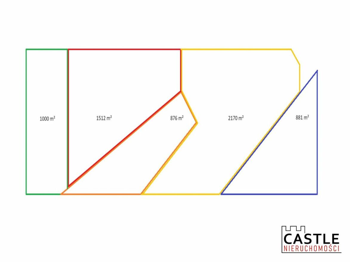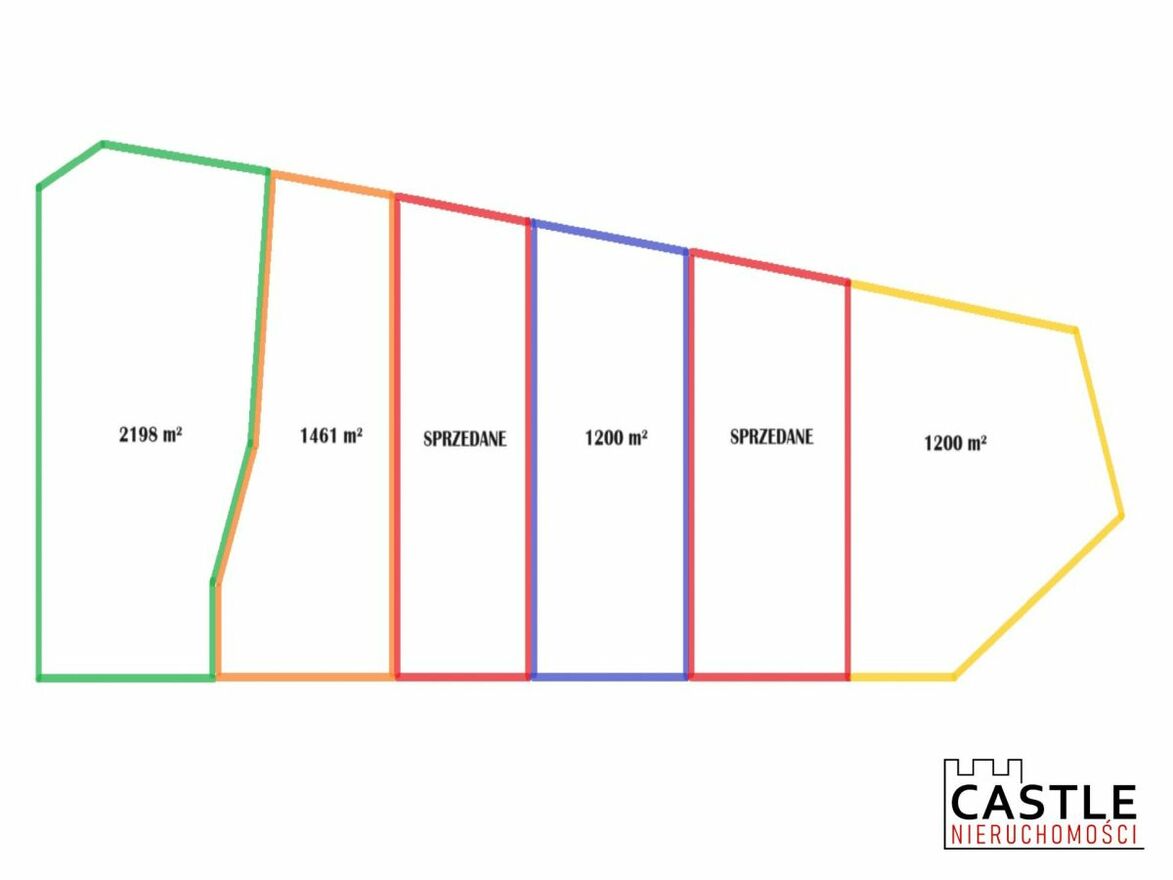 Na zdjęciach prezentujemy Państwu zbiorczo każdą z działek oznaczoną osobnym kolorem, proszę zapoznać się z kolorami.